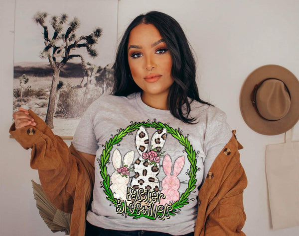 Easter blessings trio bunnies in circle 2358 DTF TRANSFER