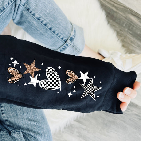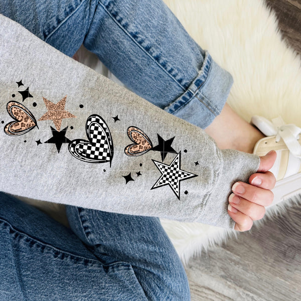 Leopard checker star heart sleeve (black) (SET OF TWO SLEEVES (CSC) DTF Transfer