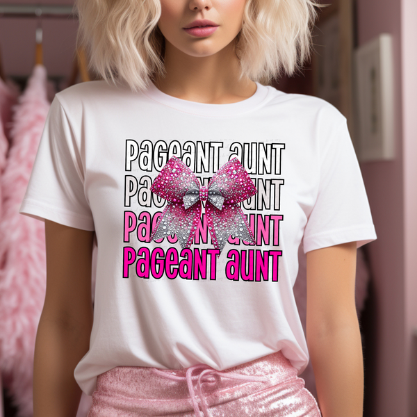 Pageant Aunt Stacked Pink and Silver Bow 117936 DTF transfer