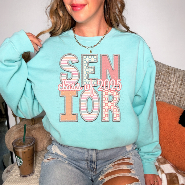 Senior 2025 stacked checkered pink numbers DTF Transfer