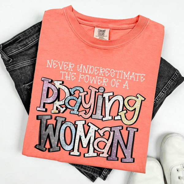 Never Underestimate The Power Of A Praying Woman WHITE (SDD) DTF Transfer