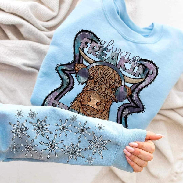Always freakin freezin (cow with earmuffs) SLEEVE ONLY 9552 DTF TRANSFER