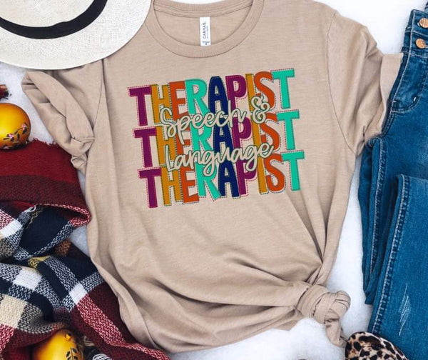 Speech & language therapist stacked (multi color lettering) 9131 DTF TRANSFER