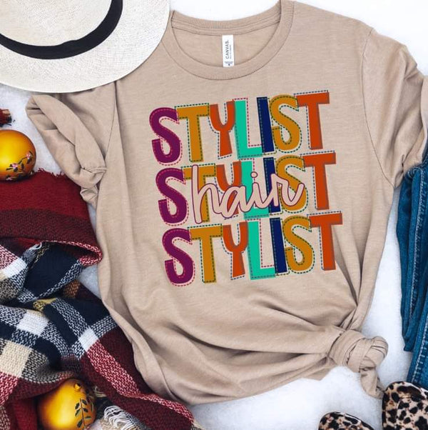Hair stylist stacked (multi color lettering) 9133 DTF TRANSFER