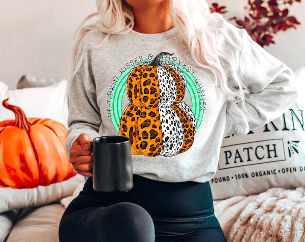 Pumpkin kisses and harvest wished leopard stacked pumpkin 2206 DTF TRANSFER