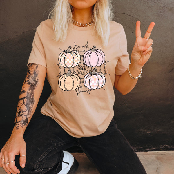 Pastel pumpkins in spider web 2176 DTF TRANSFER