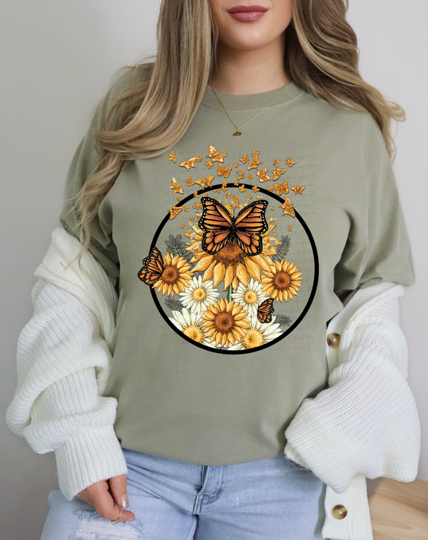 Butterflies and Floral Sunflower Circle 114820 DTF transfer
