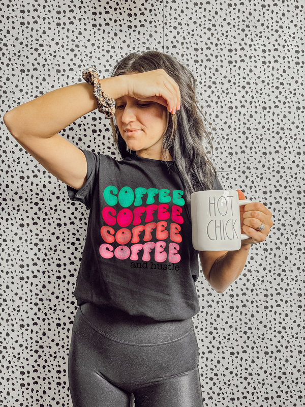 Coffee and Hustle Stacked Colorful 114758 DTF transfer