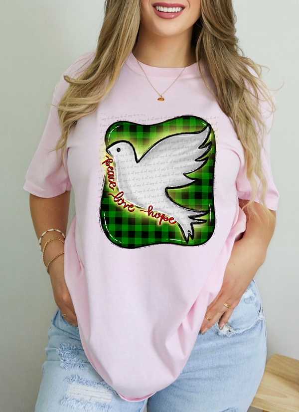 Peace Love Hope Dove Green Checkered Background 114936 DTF Transfer