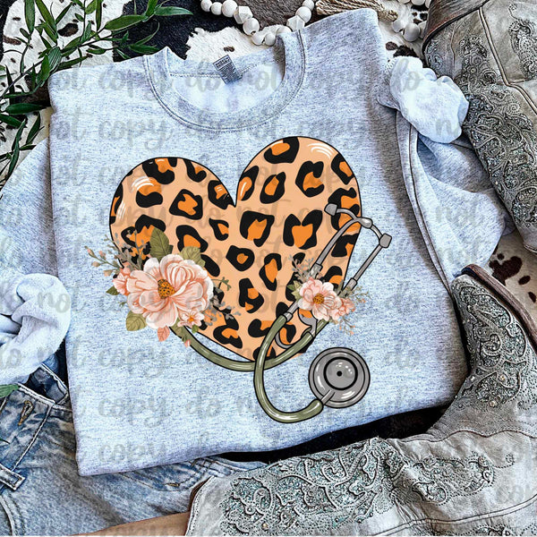 Leopard heart stethoscope (vintage) 60734 DTF transfer