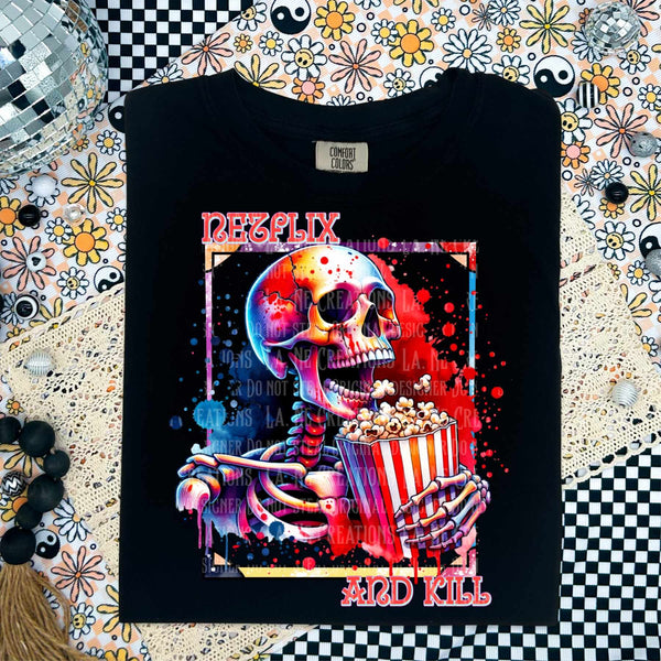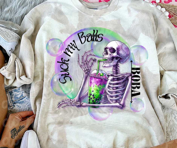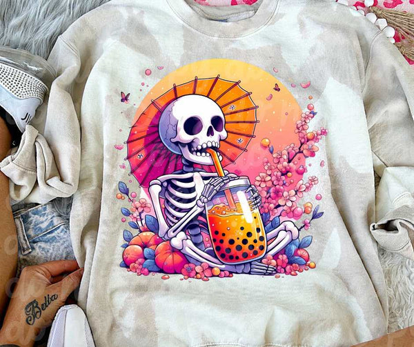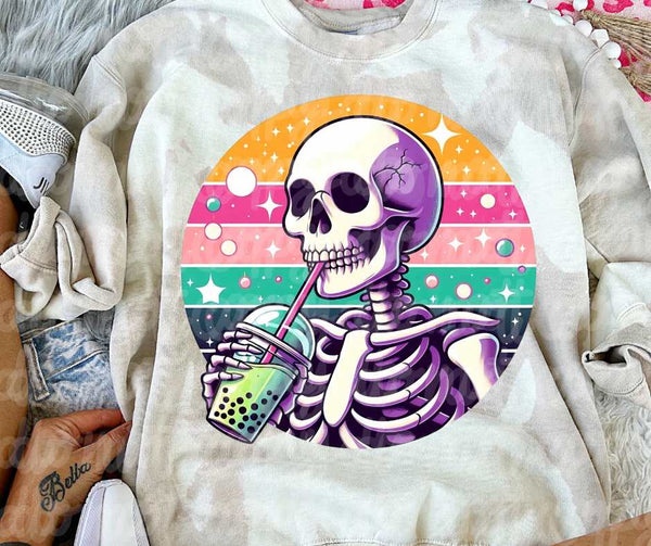 Skellie drinking boba circle background (VS) 52229 DTF transfer