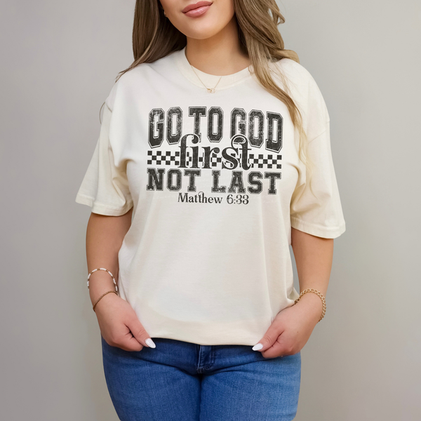 Go To God First Not Last Matthew 6:33 Grey 86327 DTF Transfer