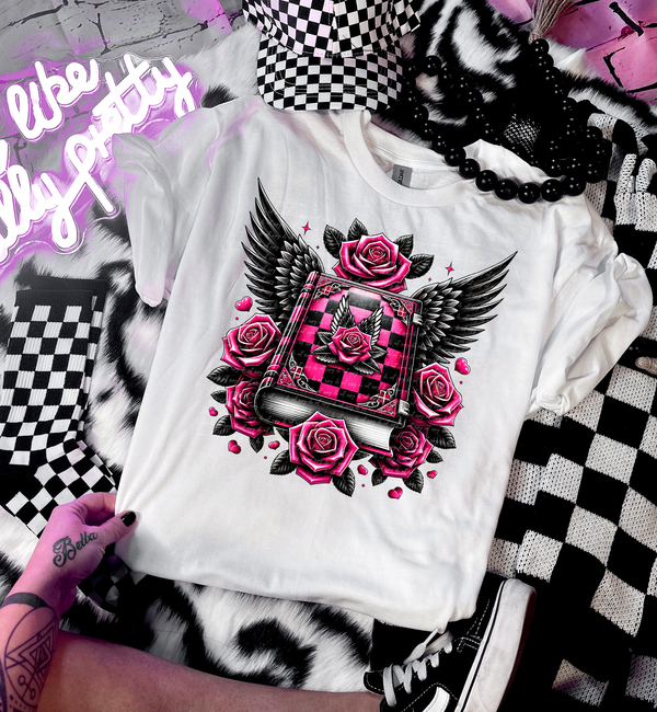 Checkered Bible With Wings And Roses 81978 DTF Transfer
