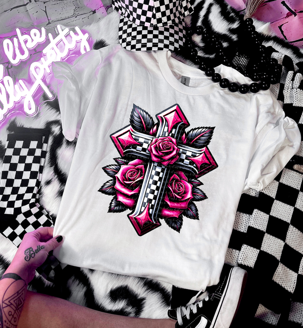 Checkered Cross With Rose Center 81980 DTF Transfer