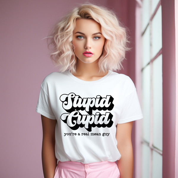 Stupid Cupid You're A Real Mean Guy Black Font 114815 DTF transfer