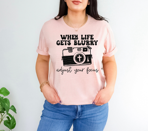 When Life Gets Blurry Adjust Your Focus Black Font 116027 DTF Transfer