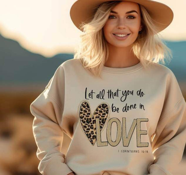 Let all that you do be done in love leopard heart 25049 DTF transfer