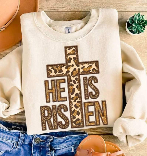 He is risen leopard cross faux embroidery 25113 DTF transfer