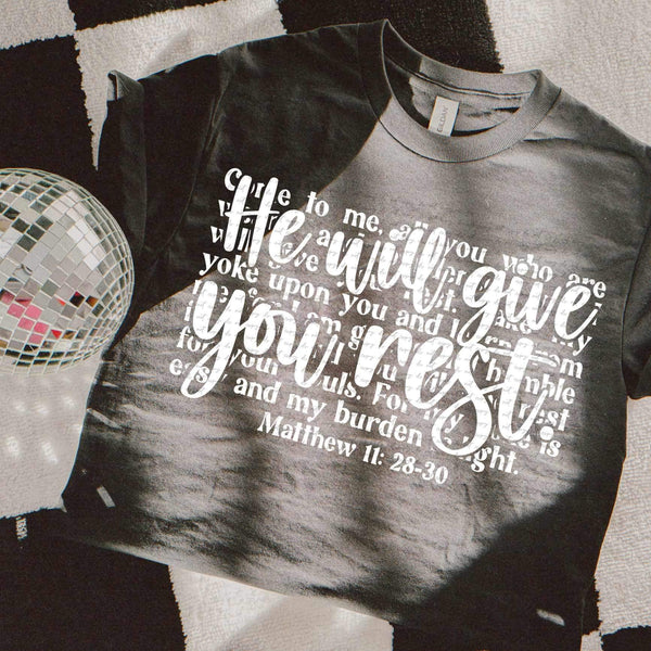 He will give you rest WHITE (SAL) 24554 DTF transfer