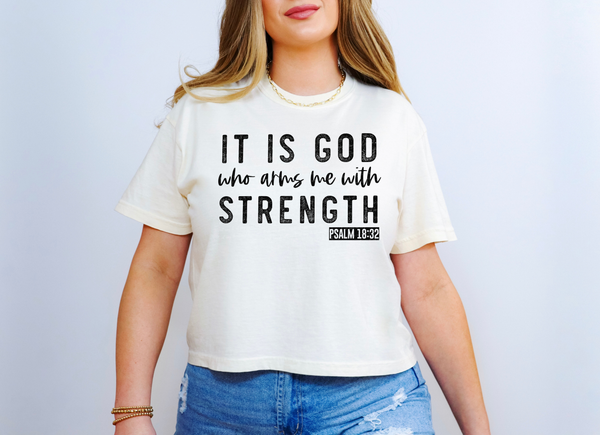 It Is God Who Arms Me With Strength Psalm 18:32 Black Font 115985 DTF Transfer