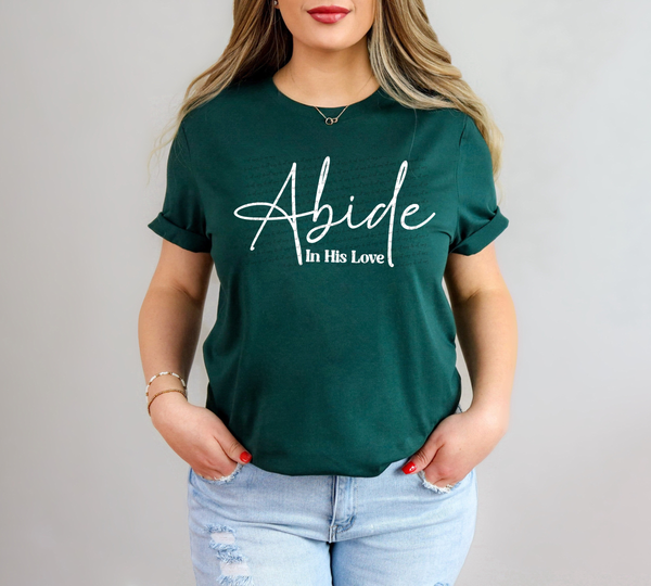 Abide In His Love Cursive And Serif Font White 89283 DTF Transfer