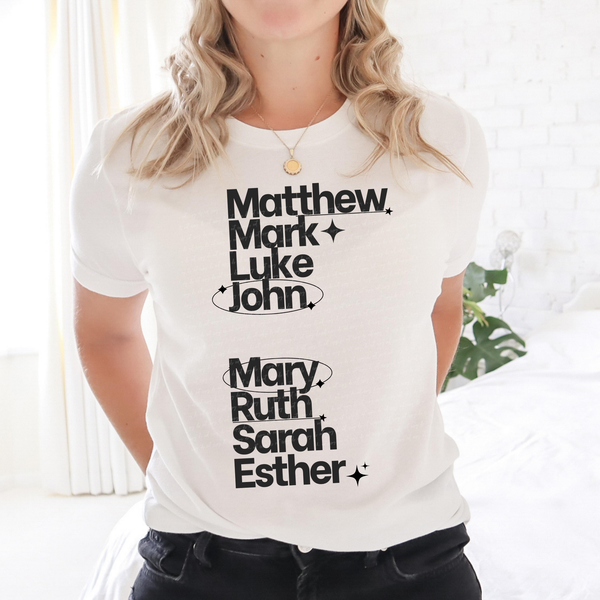 Gospels Matthew Mark Luke John Mary Ruth Sarah Esther 86027 DTF Transfer