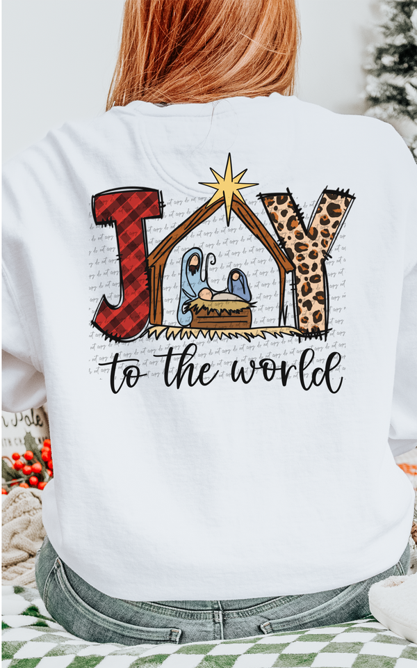 Joy To The World Manger Red Plaid Leopard (Back Print) 51464 DTF transfer