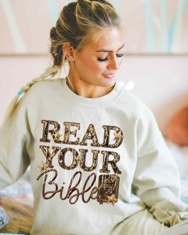 Read your Bible faux embroidery camo (PH) DTF Transfer