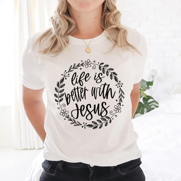 Life Is Better with Jesus Circle Wreath BLACK 116074 DTF Transfer