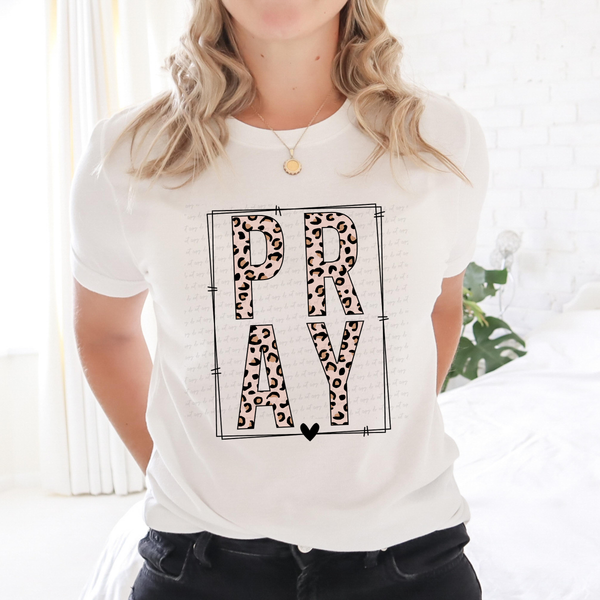 Pray Leopard Font with Frame and Heart 116087 DTF Transfer