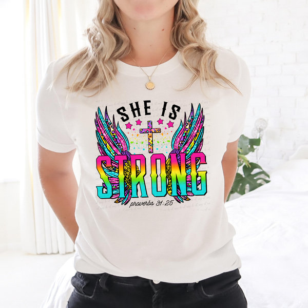She Is Strong Colorful Wings with Cross Proverbs 31:25 116094 DTF Transfer