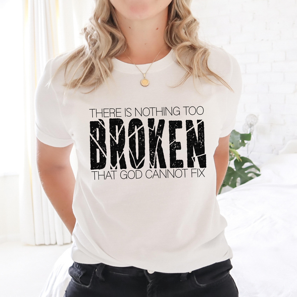 There Is Nothing Too Broken That God Cannot Fix BLACK 116100 DTF Transfer