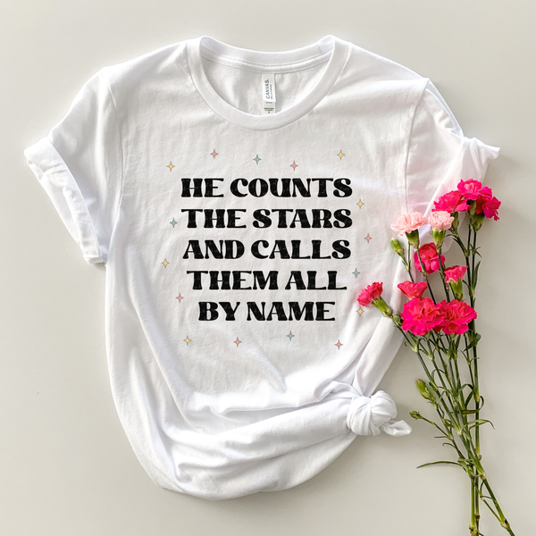 He Counts The Stars and Calls Them All By Name Black Wording Colorful Stars 116063 DTF Transfer