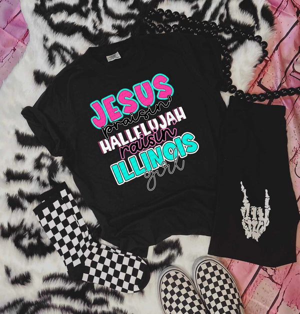 Jesus praisin hallelujah raising Illinois girl 31221 DTF transfer