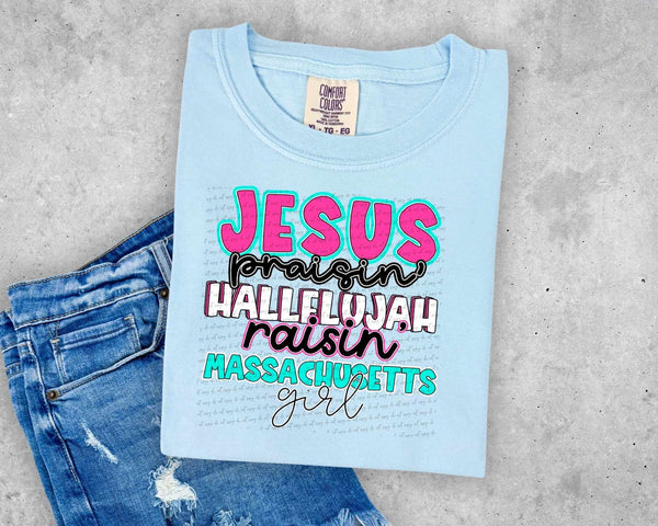 Jesus praisin hallelujah raising Massachusetts girl 31210 DTF transfer