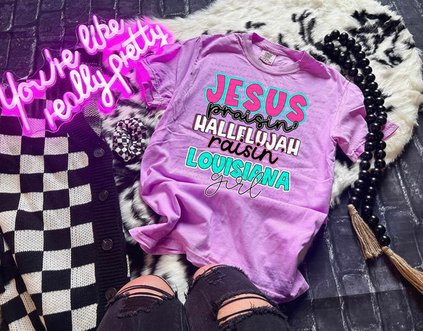 Jesus praisin hallelujah raising Louisiana girl 31208 DTF transfer