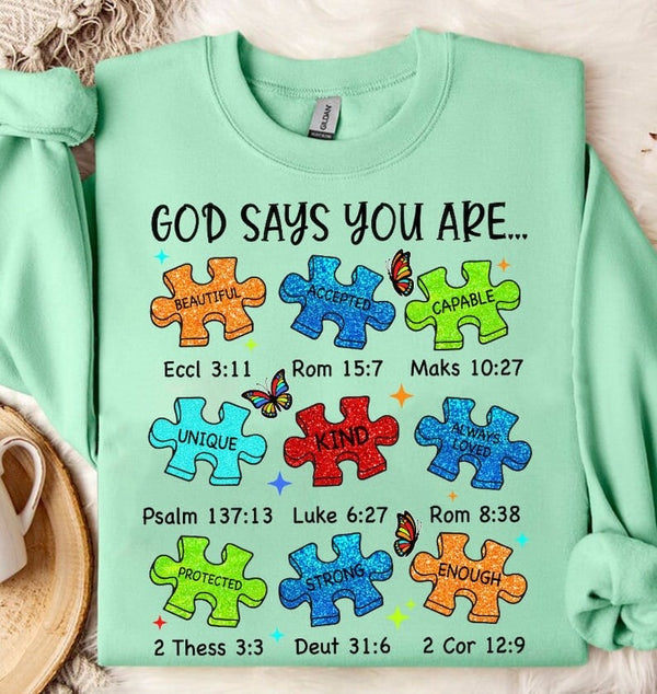 God says you are glittery puzzle pieces 29289 DTF transfer