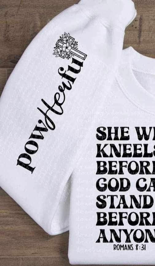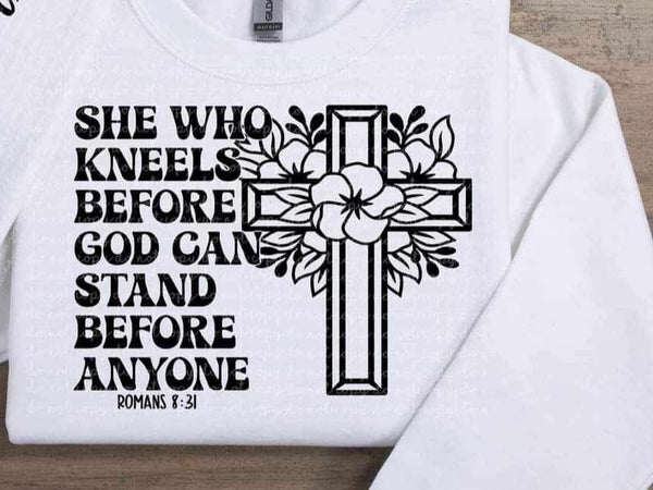 She who kneels before god can stand before anyone (CMLD) 20845 DTF transfer