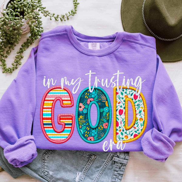 In my trusting god era patterned and white 20804 DTF transfer