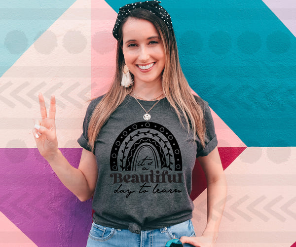 Beautiful day to learn rainbow BLACK 18680 DTF transfer