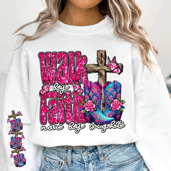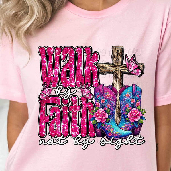 Walk by faith not by sight cross and boots 19732 DTF Transfer