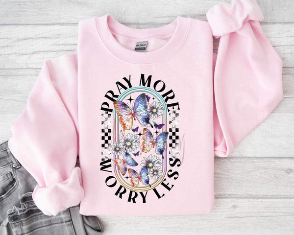 Pray more worry less red and blue butterflies 19759 DTF Transfer