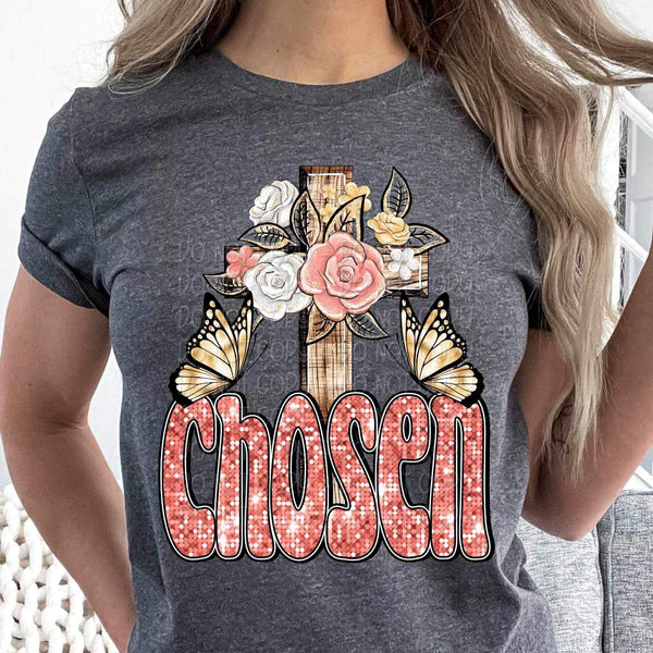 Chosen Cross with flowers and butterflies 17196 DTF TRANSFER