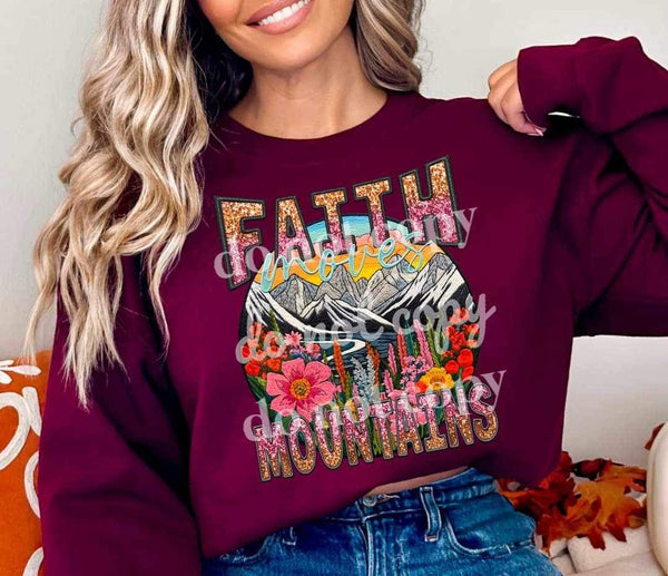 Embroidered faith moves mountains with mountain scene 11319 DTF TRANSFER