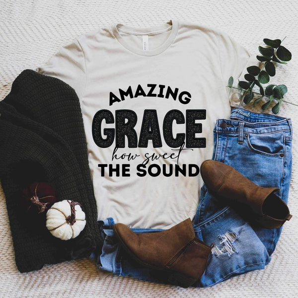 Amazing grace how sweet the sound (BLACK with sequin) 11996 DTF Transfer