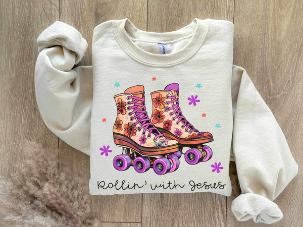 Rollin with jesus (groovy rolling skates) 15155 DTF Transfer
