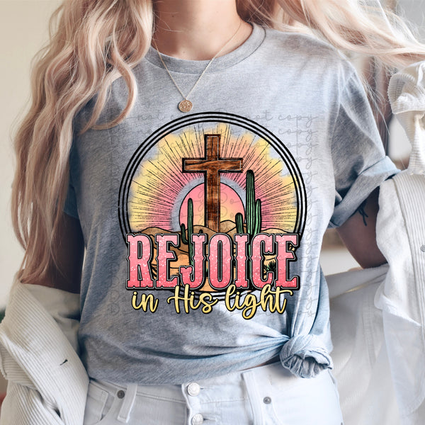 Rejoice is his light (circle with sun, cactus and cross) 10018 DTF TRANSFER