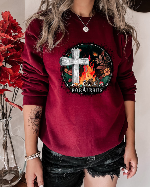 On fire for Jesus (circle, fire, cross, florals) 10026 DTF TRANSFER