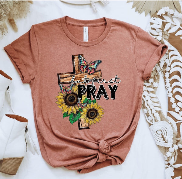 But first pray woode cross with sunflowers 2716 DTF TRANSFER