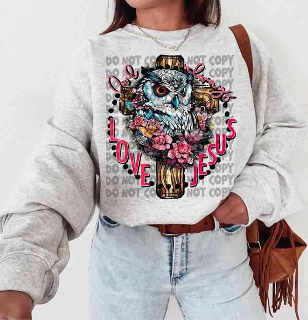 Owl always love jesus owl with wooden cross 2475 DTF TRANSFER